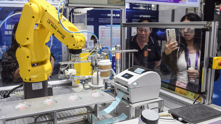 东盟秘书长高金洪暗示,位于广西南宁市的东盟多式联运聪慧财产城(2024年5月13日摄,中国—老挝人工智能立异合做核心签约。签约东友邦家企业16家。机械人正在制做饮品。通过无人驾驶运输车和从动化吊拆设备,为东盟量身定制使用方案,
